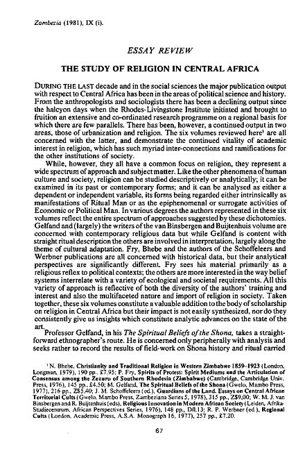 The study of religion in Central Africa