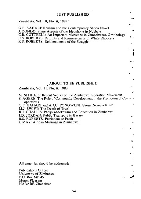 Advertisment : Just published by University of Zimbabwe