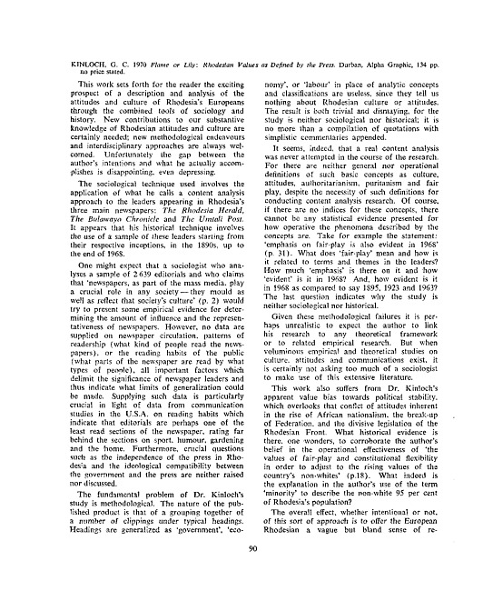 Review of: Graham C. Kinloch. Flame or lily. Durban: Alpha Graphic, 1970