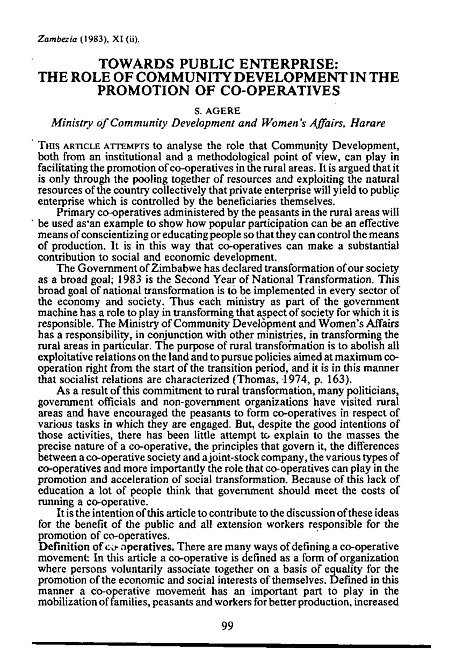 Towards public enterprise : the role of community development in the promotion of co-operatives