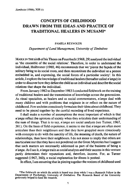 Concepts of childhood drawn from the ideas and practice of traditional healers in Musami