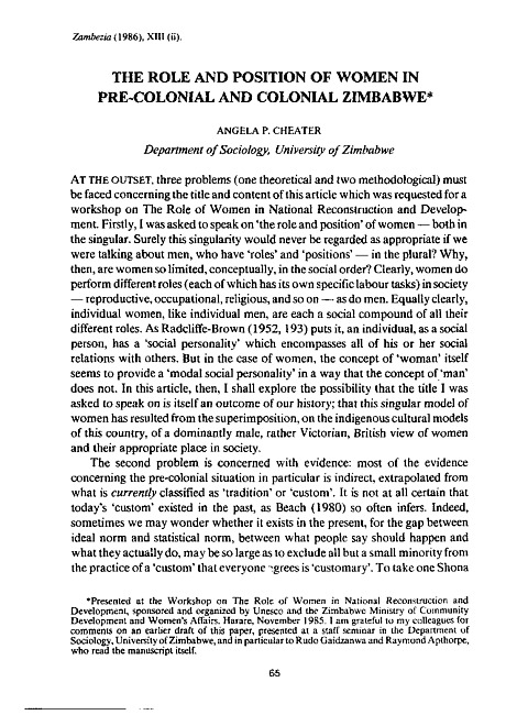 The role and position of women in pre-colonial and colonial Zimbabwe