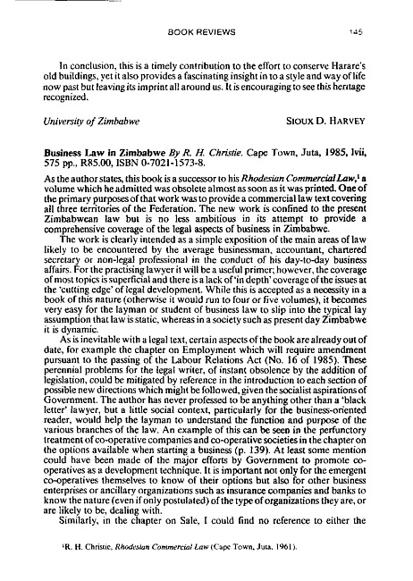 Review of: R.H. Christie. Business law in Zimbabwe. Cape Town: Juta, 185