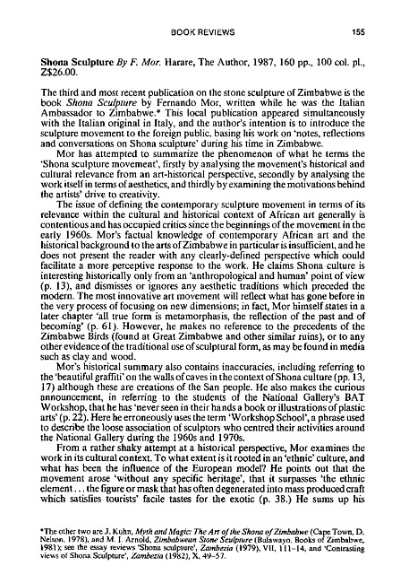 Review of: F. Mor. Shona Sculpture. Harare: Jongwe, 1987