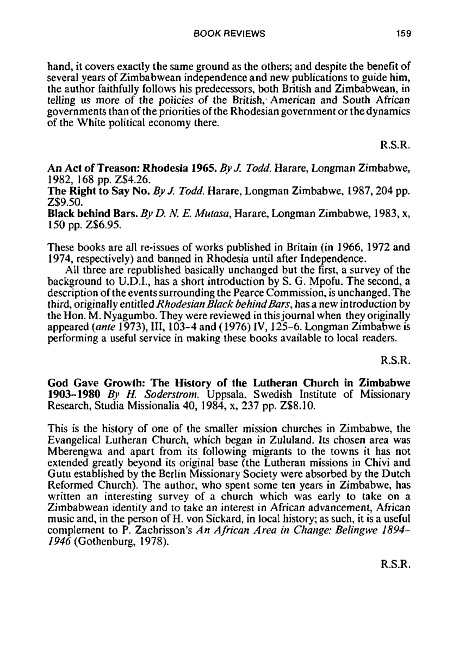 Review of: H. Soderstrom. God gave growth. Uppsala: Swedish Institute of Missionary Research, 1984