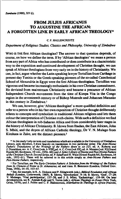From Julius Africanus to Augustine the African : a forgotten link in early African theology