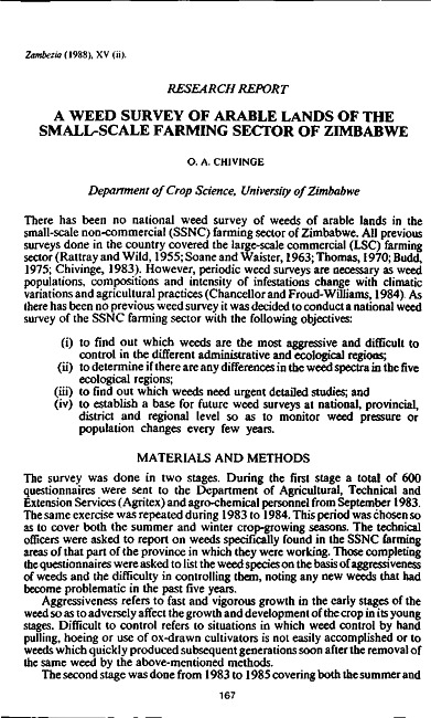 A weed survey of arable lands of the small-scale farming sector of Zimbabwe