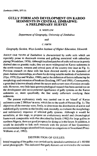 Gully form and development on Karoo sediments in central Zimbabwe : a preliminary survey