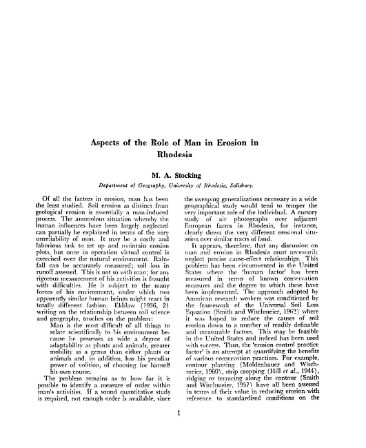 Aspects of the role of man in erosion in Rhodesia