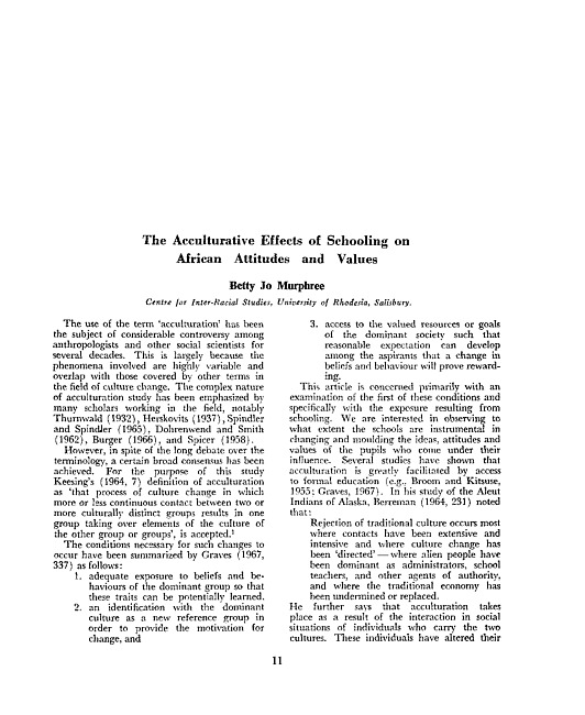 The acculturative effects of schooling on African attitudes and values