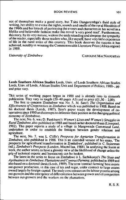 Review of: Leeds Southern African Studies. Leeds: African Studies Unit, University of Leeds, 1988-