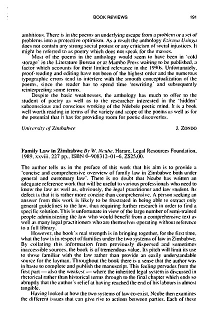 Review of: W. Ncube. Family law in Zimbabw. Harare: Legal Resources Foundation, 1989
