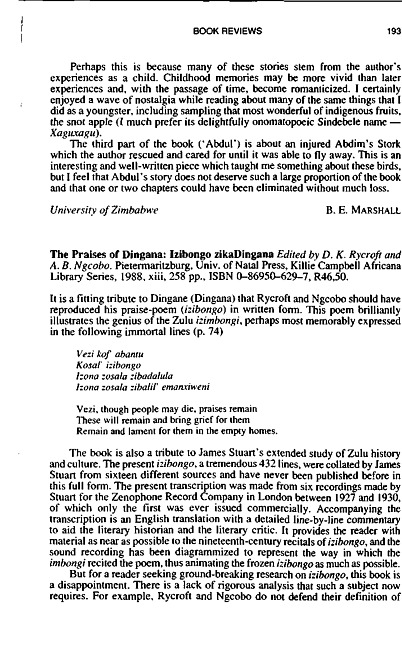 Review of: D.K. Rycroft & A.B. Ngcobo (eds). The praise of Dingana. Pietermaritzburg: University of Natal Press, 1988