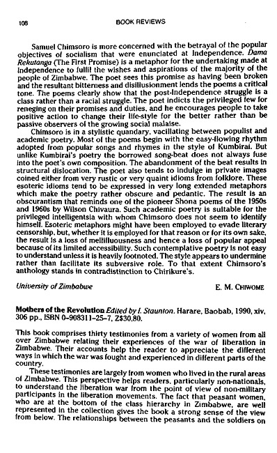 Review of: I. Staunton (ed.). Mothers of the revolution. Harare: Baobab Books, 1990