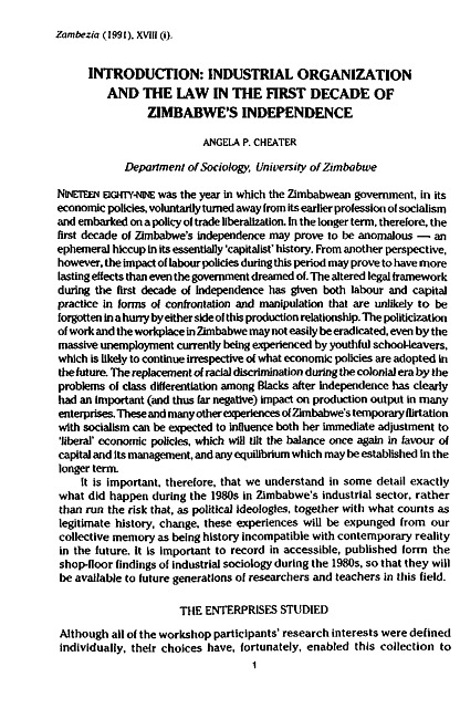Introduction : industrial organization and the law in the first decade of Zimbabwe's independence