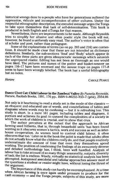 Review of: Pamela Reynolds. Dance civet cat. Harare: Baobab Books, 1991