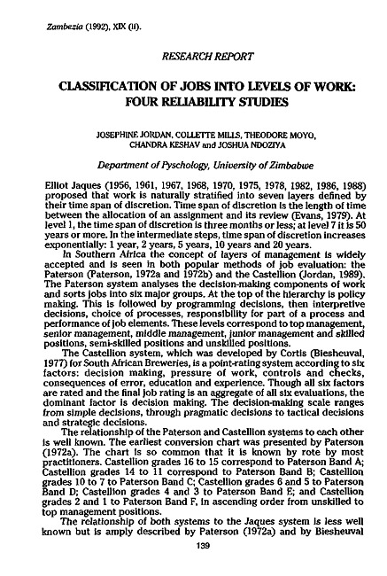 Classification of jobs into levels of work : four reliability studies