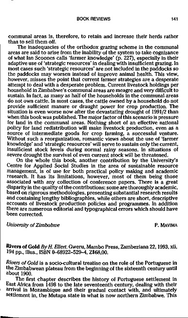 Review of: H. Ellert. Rivers of gold. Gweru: Mambo Press, 1993