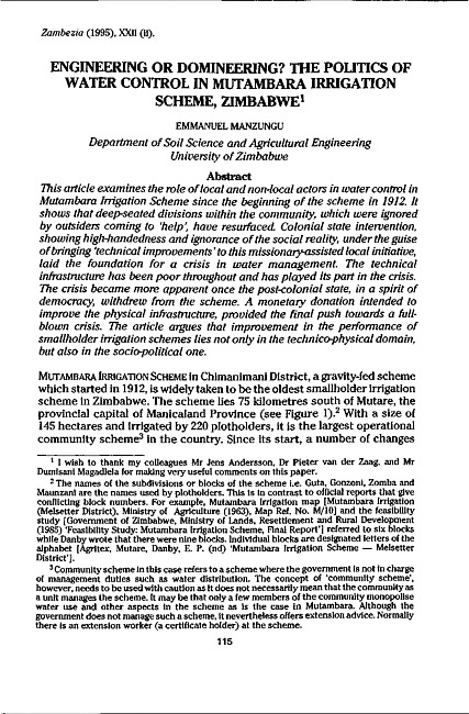 Engineering or domineering? The politics of water control in Mutambara Irrigation Scheme, Zimbabwe