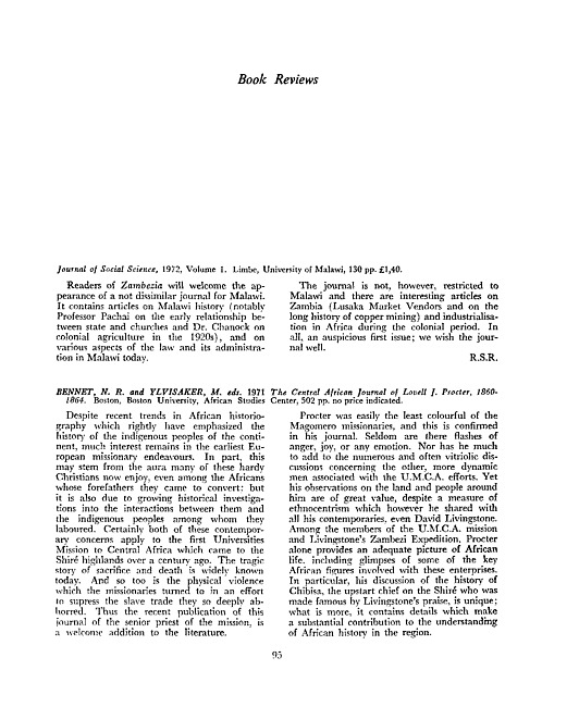 Review of: Journal of social science. Limbe: University of Malawi, 1972