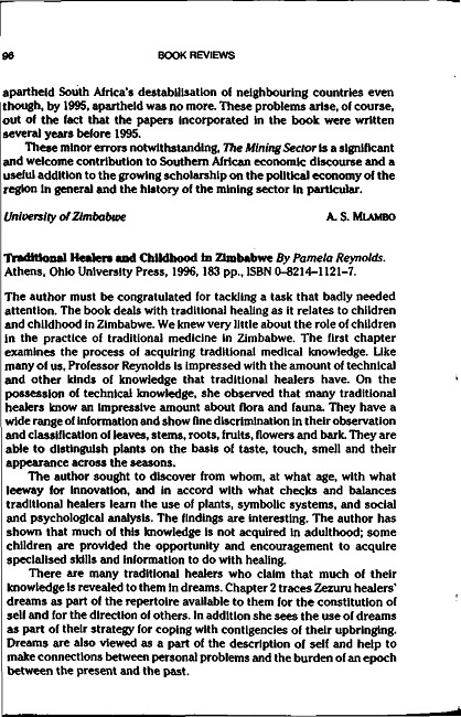 Review of: Pamela Reynolds. Traditional healers and childhood in Zimbabwe. Athens, OH: Ohio University Press, 1996
