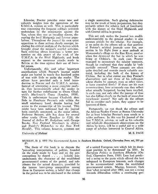 Review of: D.J. Murray. The governmental system in Southern Rhodesia. Oxford: Clarendon Press, 1970