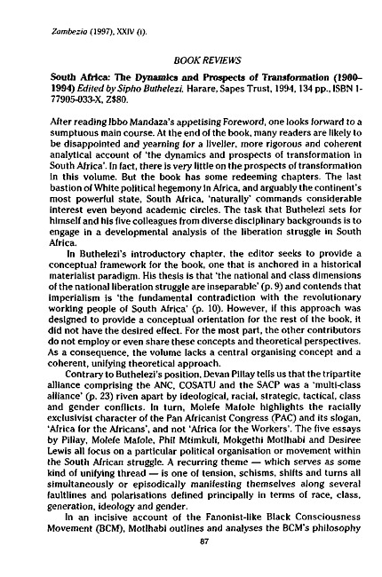 Review of: Sipho Buthelezi (ed.). South Africa. Harare: SAPES Trust, 1994