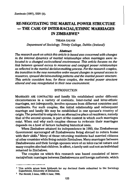 Re-negotiating the marital power structure : the case of inter-racial/ethnic marriages in Zimbabwe