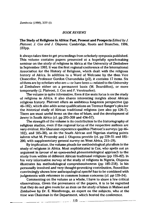 Review of: Jan Platvoet, James Cox & Jacob Olupona (eds). The study of religions in Africa. Cambridge: Roots and Branches, 1996