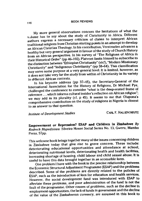 Review of: Rodreck Mupedziswa. Empowerment or repression? Gweru: Mambo Press, 1997
