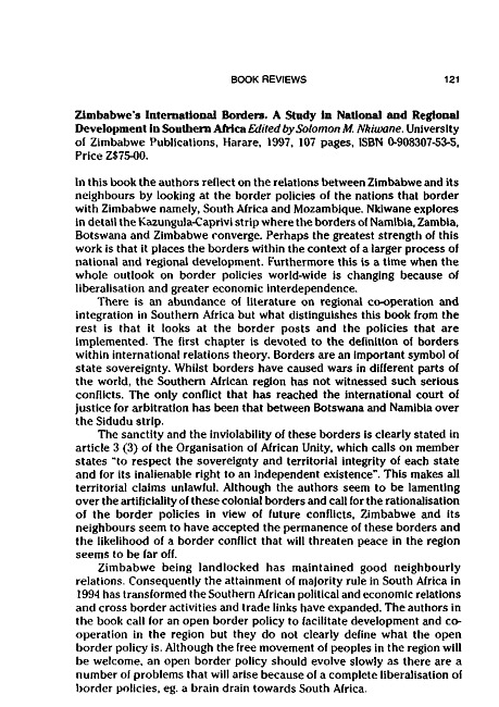 Review of: Solomon N. Nkiwane. Zimbabwe's international border. Harare: University of Zimbabwe Publications, 1997