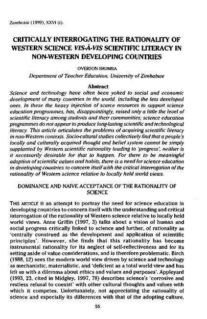 Criticaly interrogating the rationality of Western science vis-a-vis scientific literacy in non-Western developing countries
