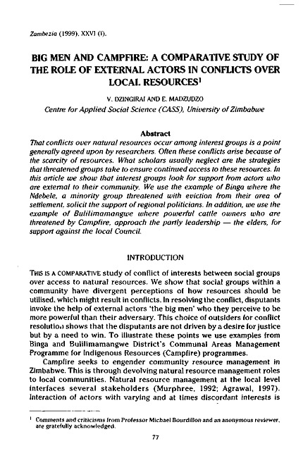 Big men and CAMPFIRE : a comparative study of the role of external actors in conflicts over local resources