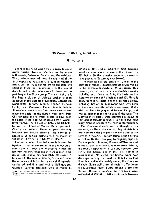 75 years of writing in Shona