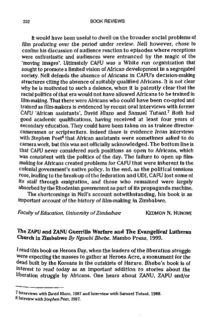 Review of: Ngwabi Bhebe. The ZAPU and ZANU guerrilla warfare and the Evangelical Lutheran Church in Zimbabwe. Gweru: Mambo Press, 1999