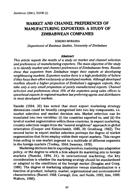 Market and channel preferences of manufacturing exporters : a study of Zimbabwe companies
