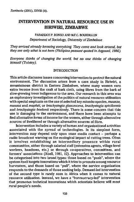 Intervention in natural resource use in Biriwiri, Zimbabwe