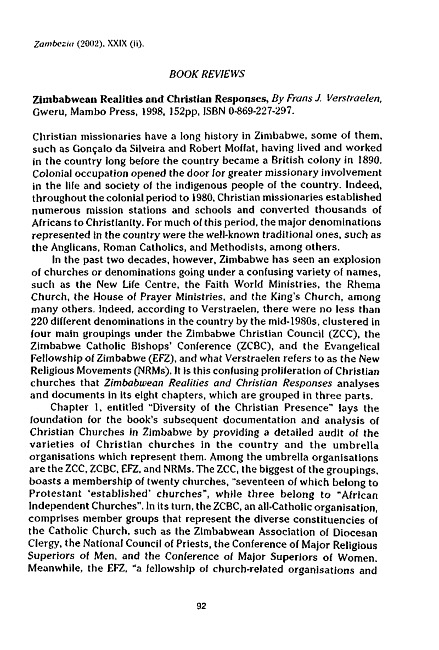 Review of: Frans J. Verstraelen. Zimbabwean realities and Christian responses. Gweru: Mambo Press, 1998