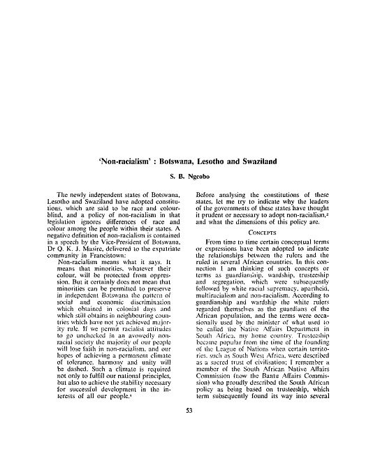 "Non-racialism" : Botswana, Lesotho and Swaziland