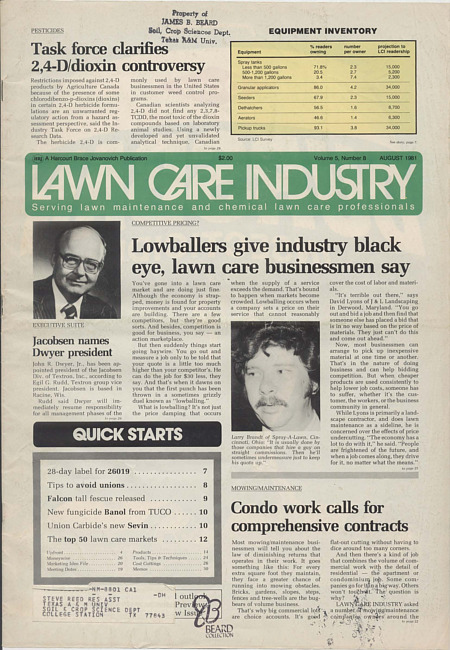 Lawn care industry. Vol. 5 no. 8 (1981 August)