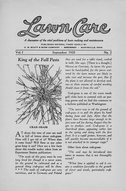 Lawn care. Vol. 1 no. 2 (1928 September)