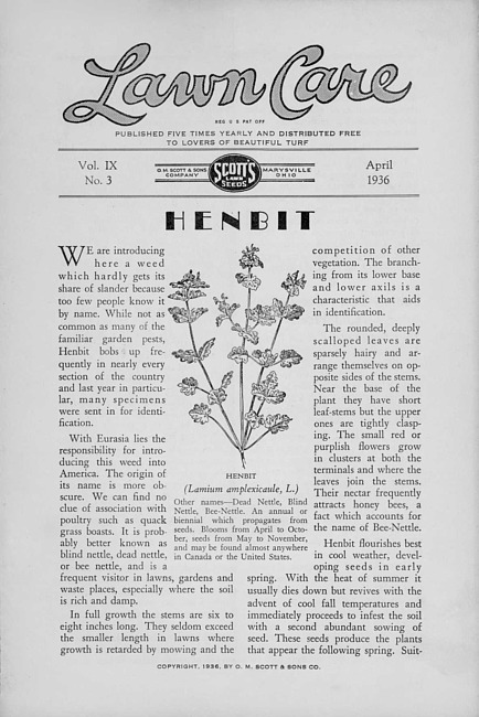 Lawn care. Vol. 9 no. 3 (1936 April)
