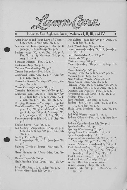Lawn care. Index to first eighteen issues, volumes I, II, III, and IV