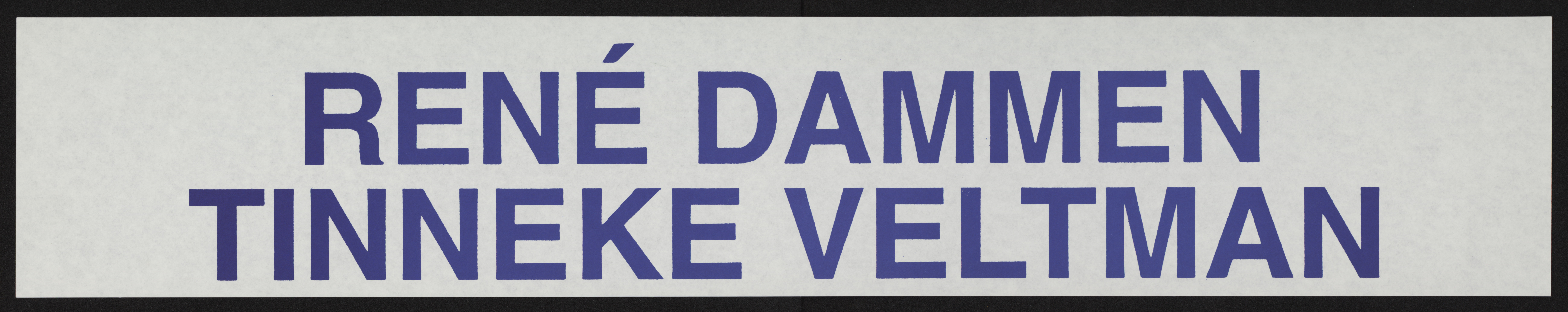 Poster shows two names printed in dark blue on white background. Possibly candidates of the New Communist Party of the Netherlands in the Amsterdam municipal elections of 1994. Ink is dark blue.