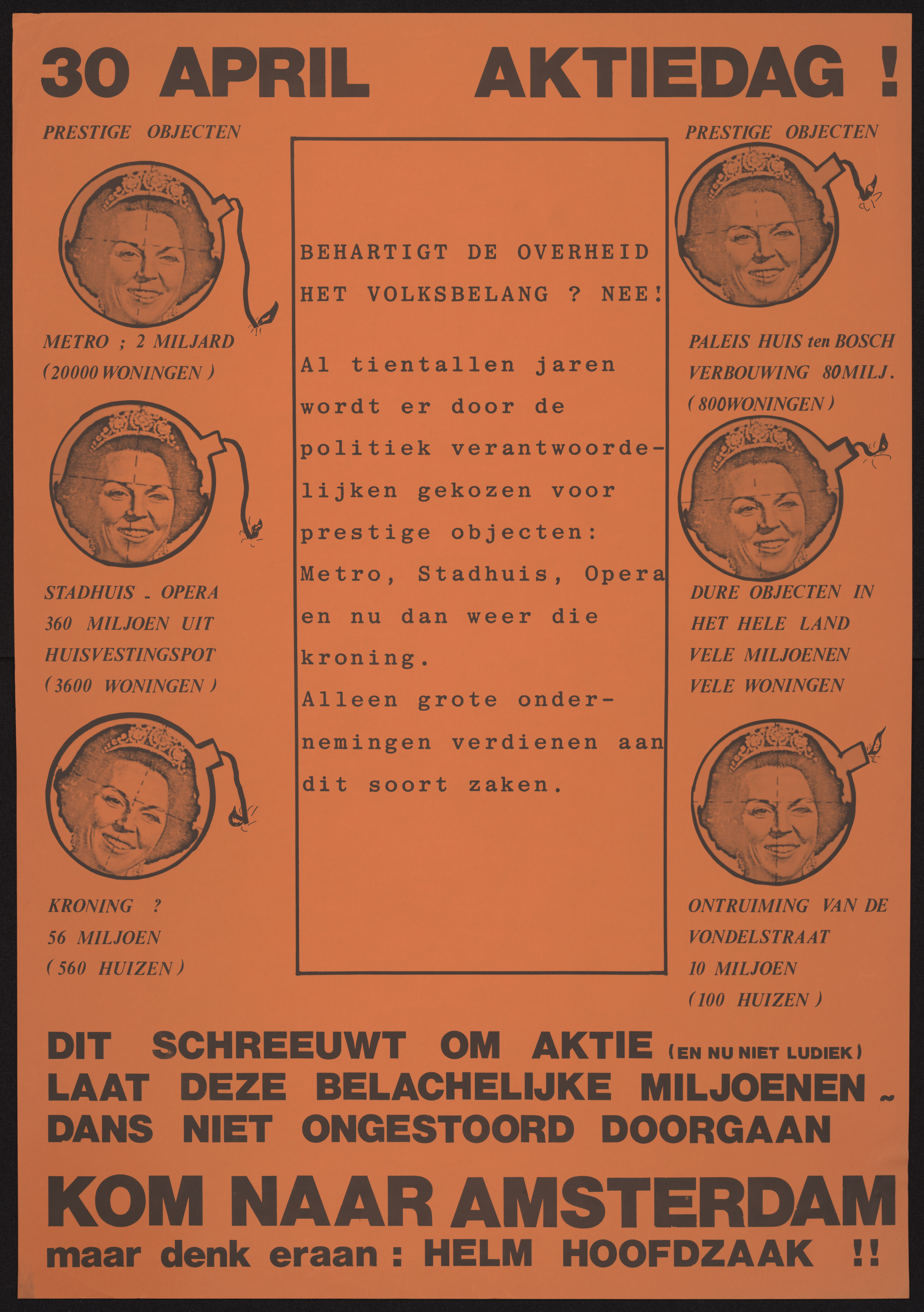 30 april aktiedag! : Prestige objecten ... Dit schreeuwt om aktie (en nu niet ludiek) laat deze belachelijke miljoenen : dans niet ongestoord doorgaan : Kom naar Amsterdam maar denk eraan-- Helm hoofdzaak!!