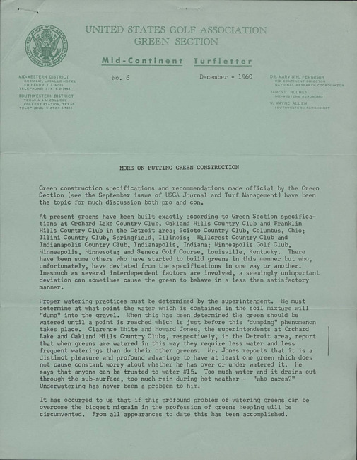 P.O. Box 708, Far Hills, N.J. 07931 ; Web: https://www.usga.org ; Email: greensection@usga.org