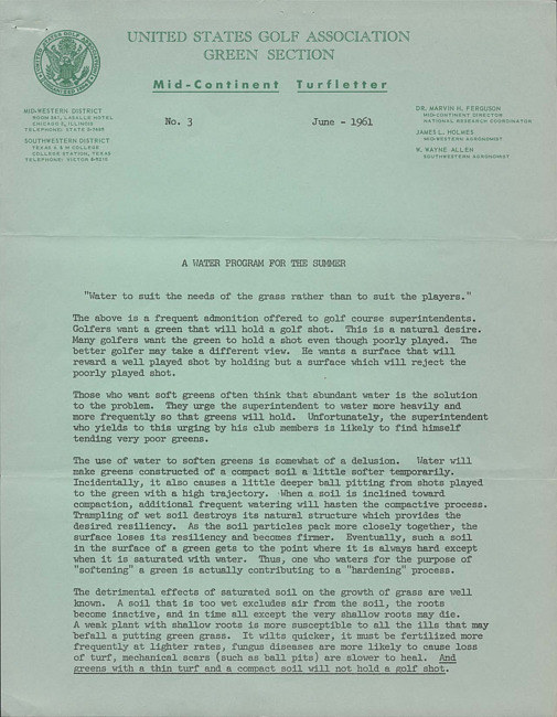 Mid-continent turfletter. (1961 June)
