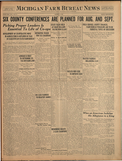 Michigan Farm Bureau news. (1927 August 19)