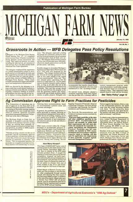 Michigan farm news : publication of Michigan Farm Bureau. (1992 January 15)