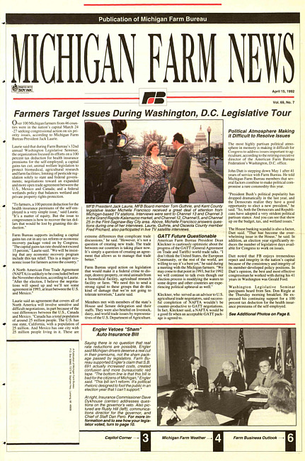 Michigan farm news : publication of Michigan Farm Bureau. (1992 April 15)